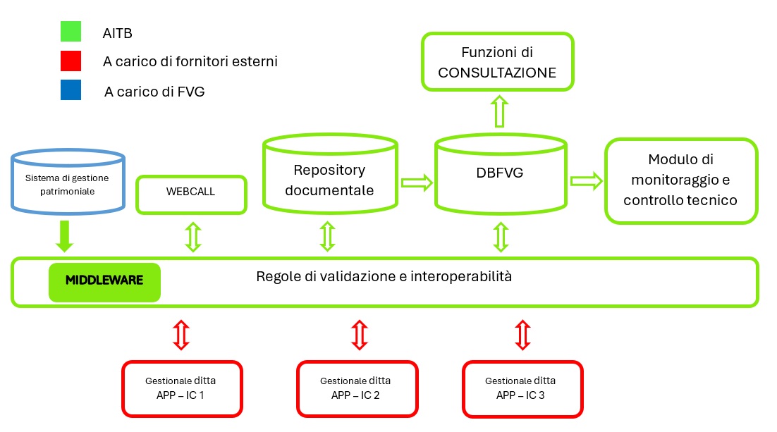 L’alimentazione di AITB è garantita sia dall’integrazione sincrona con il software gestionale dell’attuale fornitore di servizi di Global Service, sia dall’integrazione asincrona con sistema di gestione patrimoniale e i data entry degli operatori.