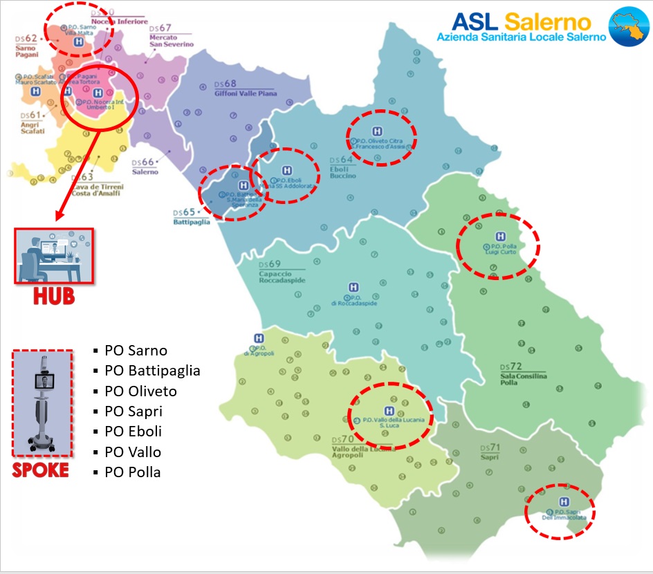 L’ASL Salerno ha messo in campo, all’interno del proprio territorio aziendale, l’innovativo servizio di “Telestroke” che consiste nella possibilità da parte di Presidi Ospedalieri periferici (denominati Spoke) di usufruire, per i pazienti giunti in Pronto Soccorso con sospetto di ictus cerebrale, di una consulenza neurologica da remoto, mediante l’utilizzo di strumentazione tecnologica avanzata che permette teleconsulto-televisita con specialisti neurologi ubicati in strutture ospedaliere di riferimento.