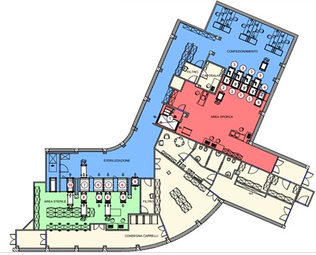 – L1: tunnel di lavaggio e disinfezione, lavastrumenti, autoclavi, pass-box e sistema di tracciabilità