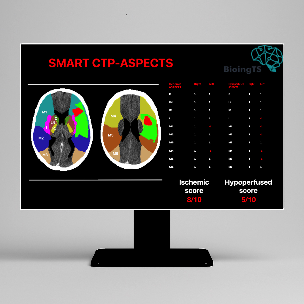 L’ictus ischemico costituisce un’importante emergenza neurologica ed è ritenuto tra le maggiori cause di morte e disabilità a livello globale. Tuttavia, i trattamenti attualmente disponibili si sono dimostrati altamente efficaci in pazienti individuati attraverso il Neuroimaging multimodale. Sinergicamente al Neuroimaging, la scala clinica Alberta Stroke Program Early CT Score (ASPECTS) fornisce un metodo sistematico per la valutazione dell’entità lesionale. L’ASPECTS (0-10) viene tradizionalmente calcolato a partire da ispezione visiva di immagini non-contrast CT (NCCT), ma la maggior sensibilità della CT-perfusion (CTP) nel rilevare precocemente le alterazioni perfusionali, suggerisce una potenziale maggior precisione della scala quando applicata a immagini perfusionali. Considerando la larga diffusione del NCCT-ASPECTS, sono stati introdotti sistemi per il calcolo automatico. Al contrario, non esistono attualmente tool automatici per la valutazione CTP-ASPECTS.