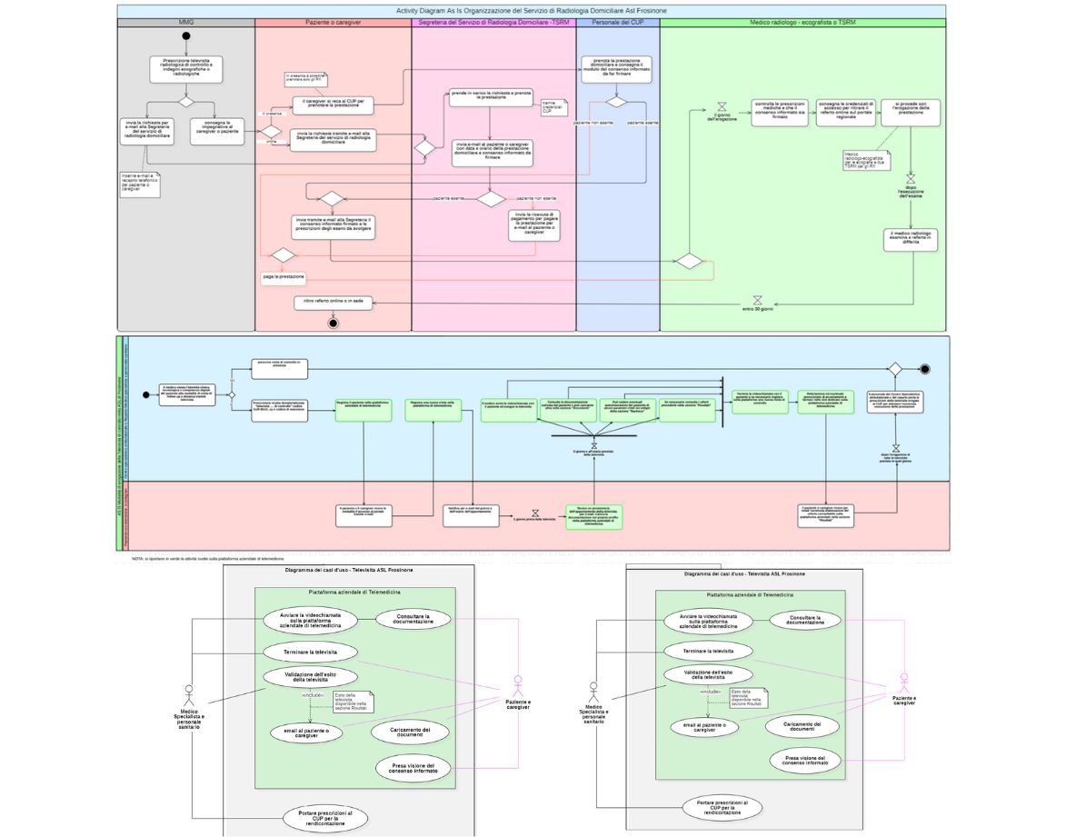 Il modello e gli strumenti di qualità sono stati quindi applicati al contesto operativo reale della ASL di Frosinone, con un focus specifico sui servizi di Televisita e Teleradiologia già attivi e in fase di attivazione. Questo approccio metodologico ha permesso di descrivere e analizzare in dettaglio i processi, delineando con precisione ruoli e responsabilità degli stakeholder coinvolti e identificando potenziali vulnerabilità operative.